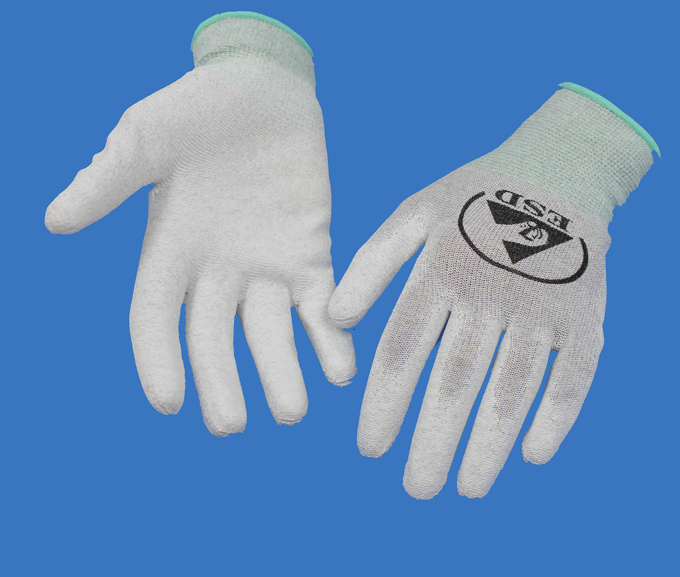 ESD Assembly Glove is knit from textured nylon yarn and features a micro-foamed polyurethane dip palm. Seamless knit, Polyurethane palm dip for excellent grip and protection from snags; Open knit back allows air flow for greater comfort, conforming to CE (EN388) standard and meets or exceeds ANSI/ESD S-20.20, EIA 625 Machine washable, uniform surface resistivity of (2.1 X 10E8 ohms as per EN 1149 Pat 1) Silicone Free. Individually packaged
